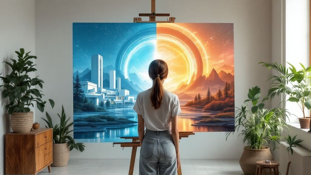有没有想过,如果你的画笔能带你穿越时空,会是怎样一番奇妙的景象?《时空中的绘旅人》就给了我们这样一个实现幻想的舞台。它不单单是一款恋爱游戏,更像是一部将“平行时空”和“艺术创作”这两个概念玩出花的宏大叙事诗,吸引了无数渴望深度剧情体验的玩家。 游戏亮点速览:为何《时空中的绘旅人》如此特别? 在这篇深度解析的开头,我想先带你快速了解这款游戏真正的魅力所在,聊聊它到底凭什么能在众多同类作品里杀出重围。故事开始,你是一名美术学院的新生,一次偶然的机会让你拥有了穿梭时空的能力,从此,现实世界与一个名为“叶塞大陆”的奇幻异世界,都成了你的冒险舞台。 双重世界观:故事线在现代校园和“叶塞大陆”这个奇幻世界之间来回切换。这种鲜明的对比,给角色和剧情带来了极强的戏剧张力。 美术生的身份:你的角色是一位极具天赋的年轻画师。这个身份设定非常巧妙,它把“绘画”这个主题无缝地融入了玩法和叙事,让你的每一次创作都成为推动故事发展的关键。 五位关键人物:旅途中,你会遇到五位背景复杂、个性鲜明的男主角。他们在不同的时空里,身份和秘密也截然不同,等着你一层层去揭开。 这种双世界的设定,可不是简单的背景板。它才是驱动整个故事、情感和悬念的核心引擎。游戏一开场就用一个极具吸引力的引子牢牢抓住你的心,让你在探索不同时空的旅途中,自然而然地与那些性格各异的角色产生深刻的羁绊。 市场洞察:精准把握女性玩家的心 《时空中的绘旅人》能火起来,绝不是运气好那么简单。它背后是对市场脉搏的精准把握,深刻理解了女性玩家群体对于故事深度、情感共鸣和顶尖美术的真实渴望。这些年,中国的女性游戏玩家规模一直在增长,对乙女游戏的需求也越来越旺盛。 根据中国音数协游戏工委的数据,国内手游市场的女性玩家比例已达到 48.6%,几乎和男性玩家平分秋色。这些数字背后,是一个庞大、活跃且付费意愿强烈的女性玩家群体。她们为《时空中的绘旅人》这类强调剧情和角色塑造的游戏,提供了坚实的用户基础。如果你想深入了解这个趋势,可以从这份报告中一窥女性游戏市场的增长潜力。 说到底,正是这种对玩家心理的透彻理解,再结合其独一无二的“时空旅行”概念,共同构筑了《时空中的绘旅人》吸引并留住玩家的坚固基石。 《时空中的绘旅人》核心魅力速览 本表格旨在帮助新玩家快速掌握游戏的核心设定、主要玩法以及其在市场中的独特定位。 核心要素 具体描述 对玩家的吸引力 平行时空叙事 故事在现实校园与奇幻异世界“叶塞大陆”间穿梭,同一角色在不同时空拥有不同身份。 提供了极强的故事张力和悬念,满足了玩家的探索欲和对“if线”的想象。 “绘画”主题融合 玩家扮演美术生,绘画不仅是身份,更是推动剧情、解锁互动的核心玩法。 将艺术创作融入游戏,体验独特,增强了玩家的代入感和成就感。 高质量美术与声优 拥有业界顶级的立绘、CG 和全程语音,由知名画师和一线声优倾力打造。 带来视听双重享受,是吸引并留住“颜控”和“声控”玩家的关键。 深度情感连接 通过细腻的剧情和丰富的个人线,塑造了五位立体、复杂的男主角,情感发展层层递进。 满足了女性玩家对高质量剧情和深度情感共鸣的核心诉求。 在接下来的部分,我们会更深入地聊聊这些元素是如何巧妙地交织在一起,最终创造出那种让人欲罢不能的沉浸式体验的。 故事与设定:平行时空如何构建沉浸式剧情 《时空中的绘旅人》这款游戏,最让人拍案叫绝的地方,莫过于它的“平行时空”设定。这可不是什么简单的背景板,而是整个故事的核心引擎,负责制造悬念、牵动我们的情绪。玩家就像一个真正的旅人,在熟悉的“现代校园”和充满奇幻色彩的“叶塞大陆”之间来回穿梭,而每个世界都有着自己独特的规则和样貌。 这种双线叙事的手法,最迷人的地方就在于强烈的“反差感”。试想一下,现实世界里那个温文文雅的学长,到了叶塞大陆,可能瞬间变成了一位身负重任的神秘法师。这种身份和性格上的巨大转变,不仅让角色立刻变得有血有肉,也勾起了玩家心里那个最大的疑问:到底哪一个才是真实的他?这两个他之间,又藏着什么样的秘密? 双重世界的视觉与文化反差 两个世界在视觉风格、文化背景上的巨大差异,正是让我们完全沉浸进去的关键。 现代校园 的画面总是明亮又通透,设计很接地气,充满了我们熟悉的生活感。 叶塞大陆 就完全是另一番景象了。色调浓郁深沉,建筑风格古典又魔幻,处处都透着一股神秘和未知。 这种美术风格上的巨大反差,其实和我们装修房子时选择不同的配色方案是一个道理。不同的颜色组合能塑造出完全不同的空间氛围。如果你想深入了解色彩如何影响家的感觉,不妨看看我们这篇关于打造理想家居配色的专业建议,你会发现背后的美学原理是相通的。 游戏的编剧非常高明,他们总是在时空切换的缝隙里埋下伏笔。可能在现代世界里一个毫不起眼的小东西,或者一句不经意的话,转眼就成了叶塞大陆剧情里解开谜题的关键。 下面这张概念图,描绘了一位绘旅人在漫天星辰的黄昏下创作的景象,恰到好处地捕捉到了那种穿梭于不同时空中的浪漫与孤独。 这张图生动地诠释了“绘旅人”的核心——用一支画笔,去连接和记录不同世界